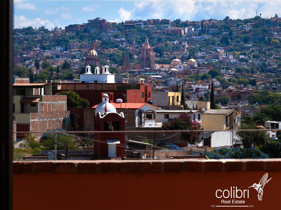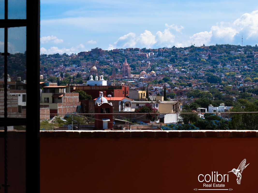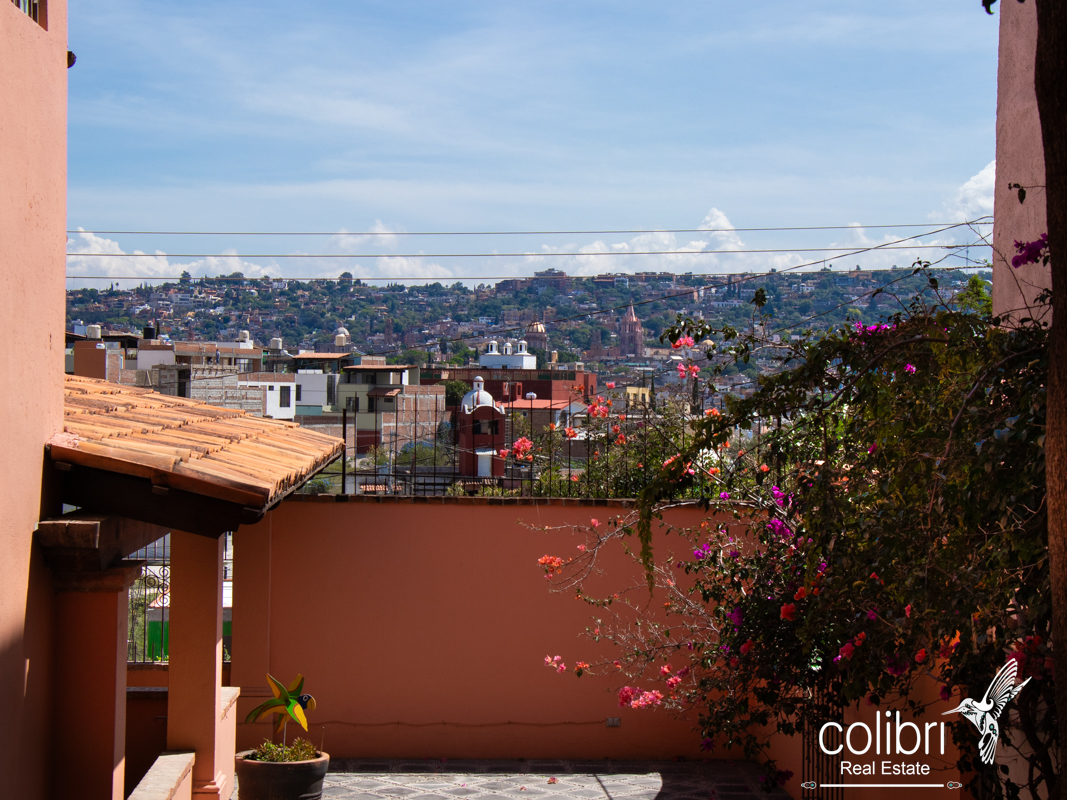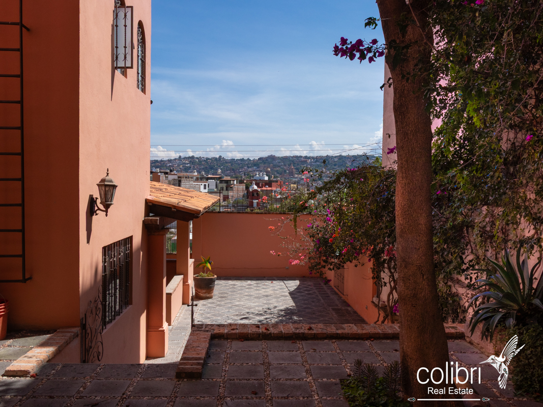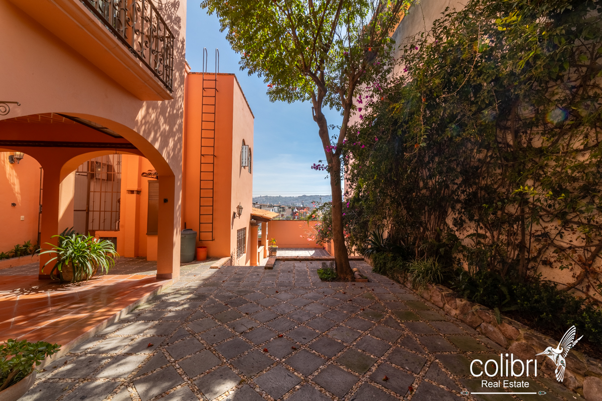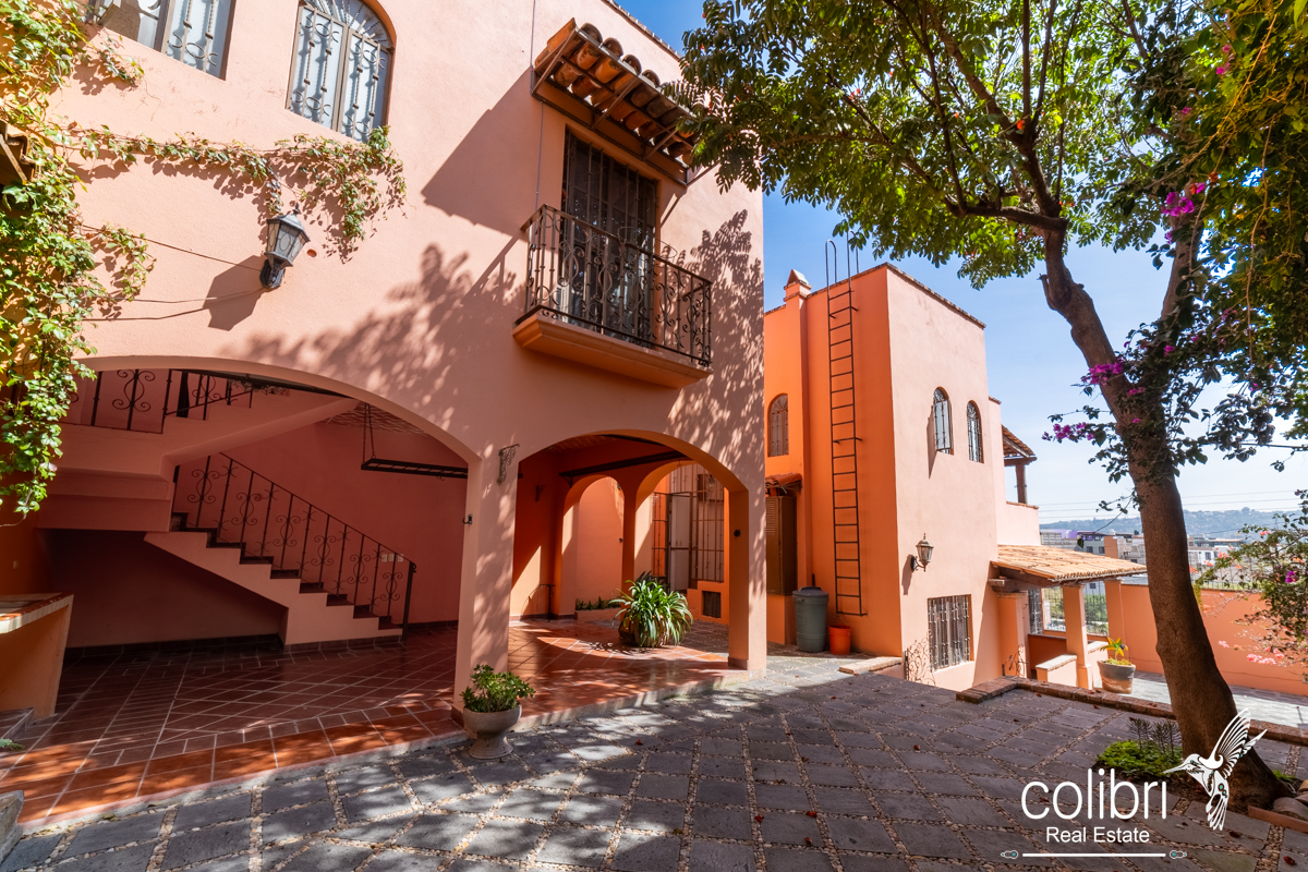 The second bedroom is located separately from the main building, offering complete privacy. Accessed via a staircase in the covered patio, it features its own balcony, bright windows, and a bathroom decorated with Talavera tile, maintaining the Spanish harmony that defines the entire home.