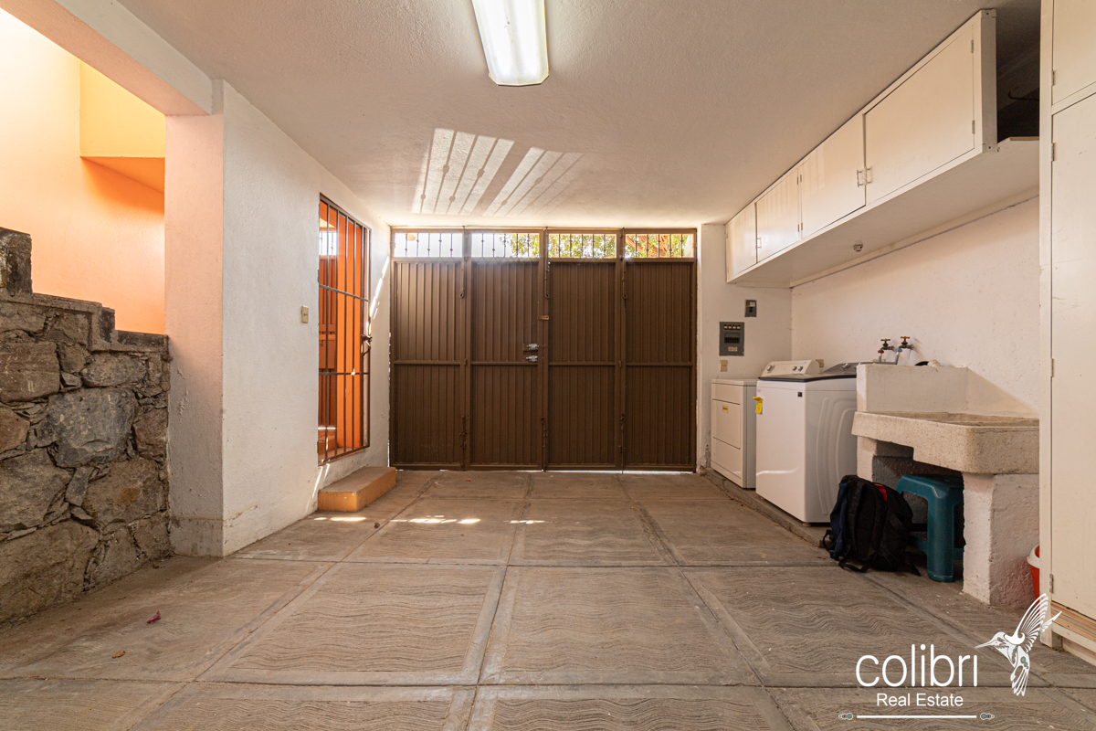 In the garage area, you’ll find the laundry space, equipped with hookups for a washer and dryer, as well as the traditional cement wash basin.