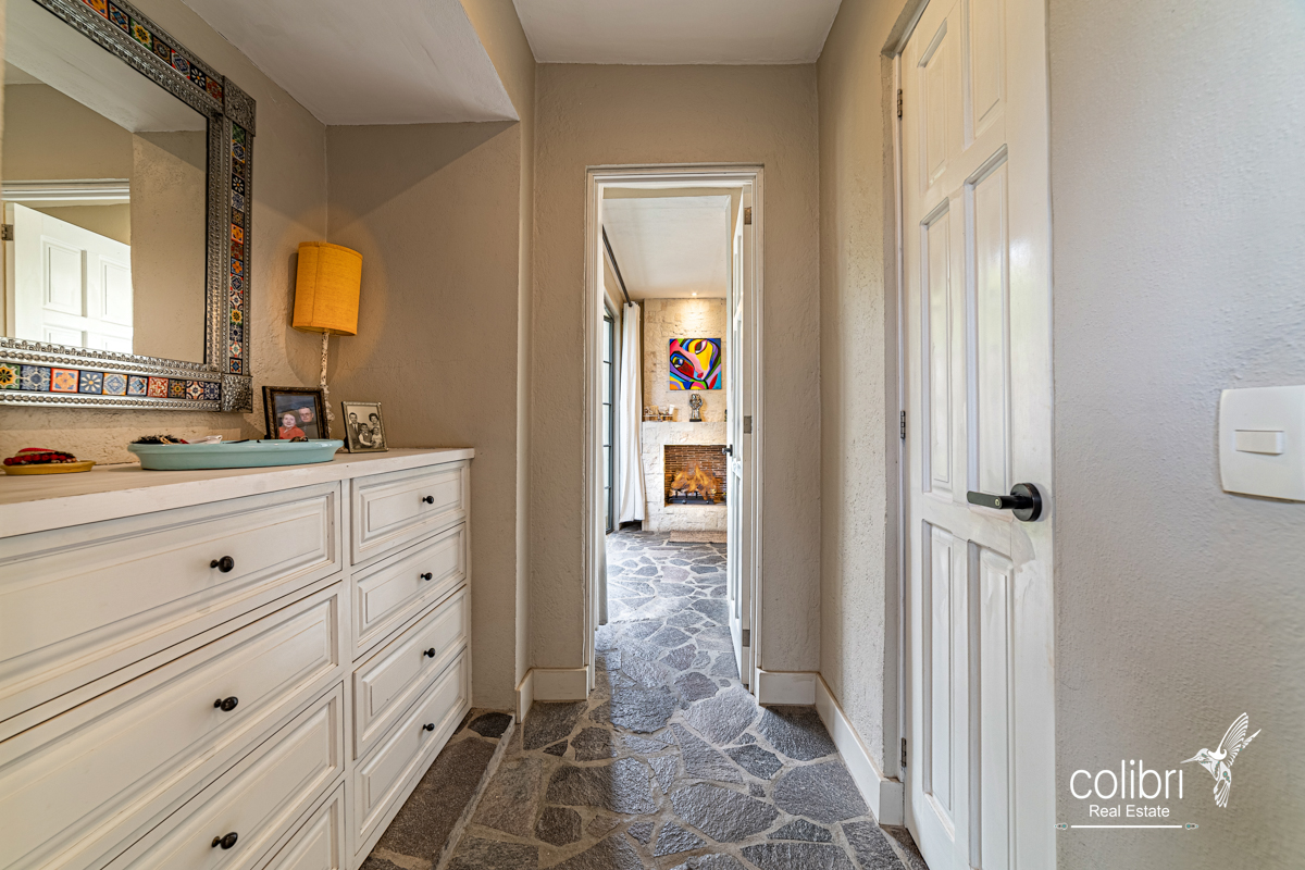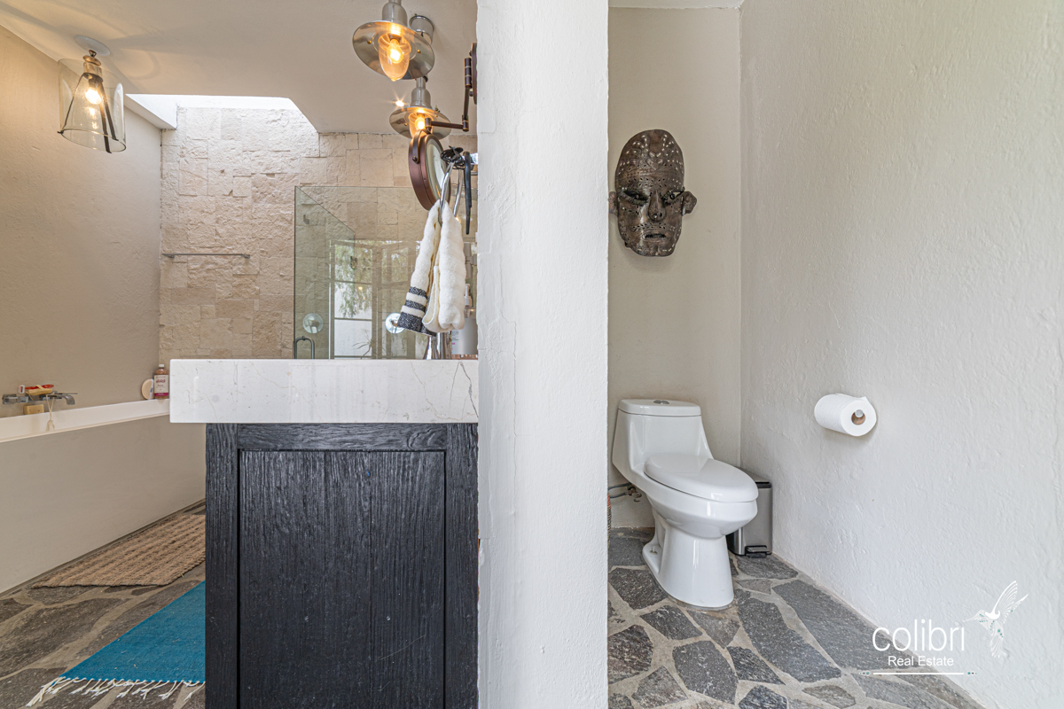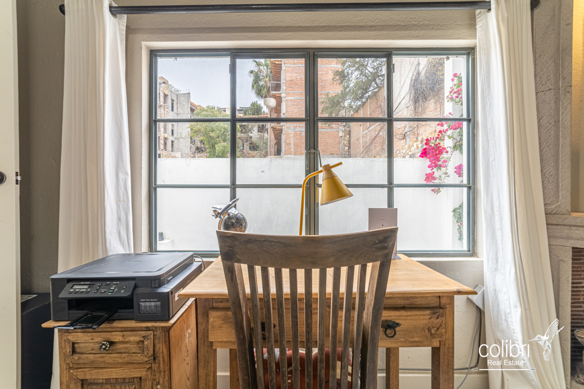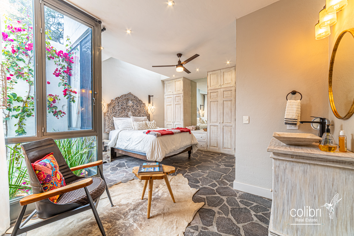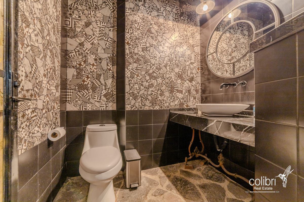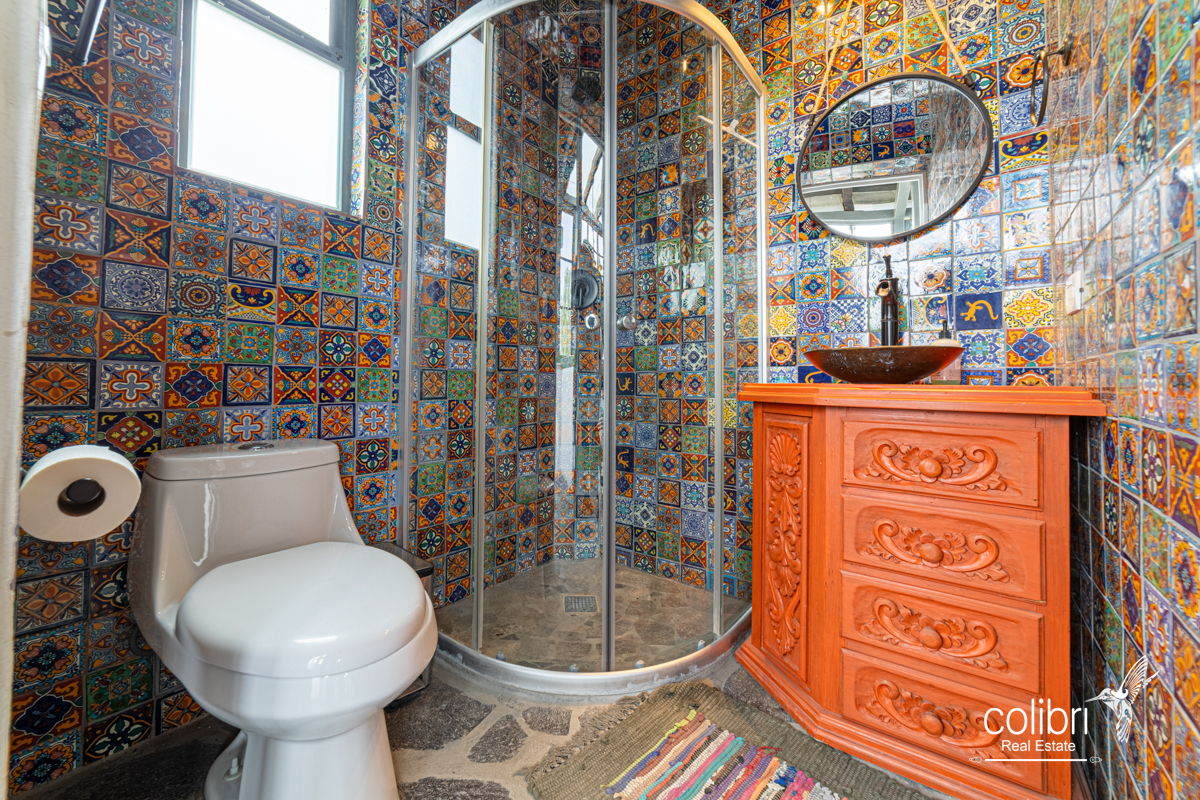 This level offers an exciting multipurpose area, perfect as a study or additional bedroom, surrounded by windows and exquisitely decorated. Its bathroom, adorned with vibrant Talavera tiles, adds a touch of color and tradition.