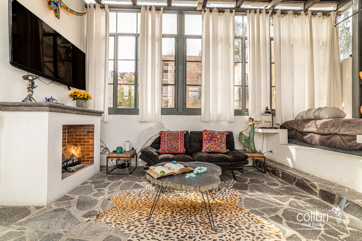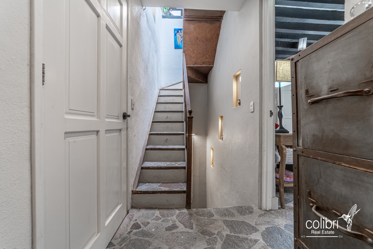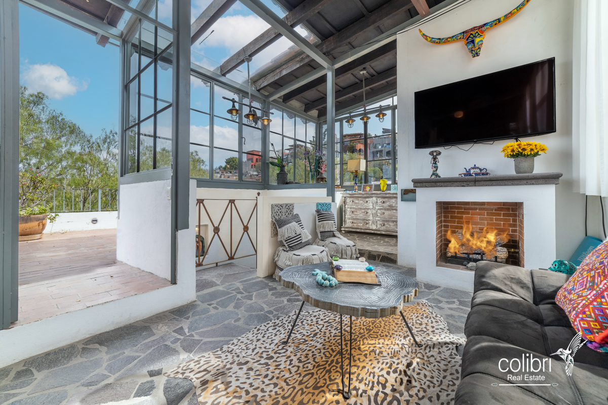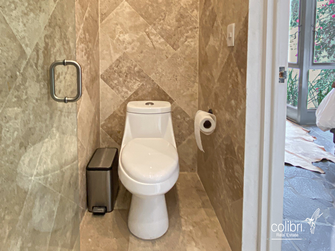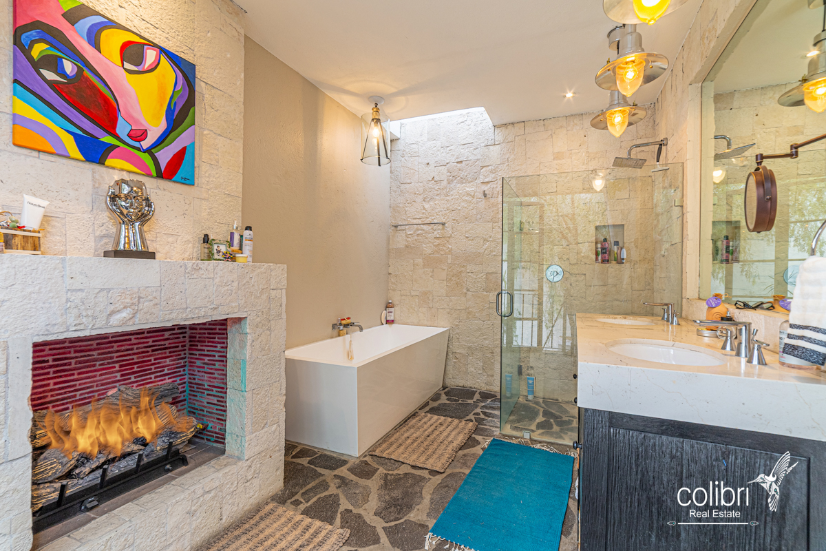 This level offers an exciting multipurpose area, perfect as a study or additional bedroom, surrounded by windows and exquisitely decorated. Its bathroom, adorned with vibrant Talavera tiles, adds a touch of color and tradition.
