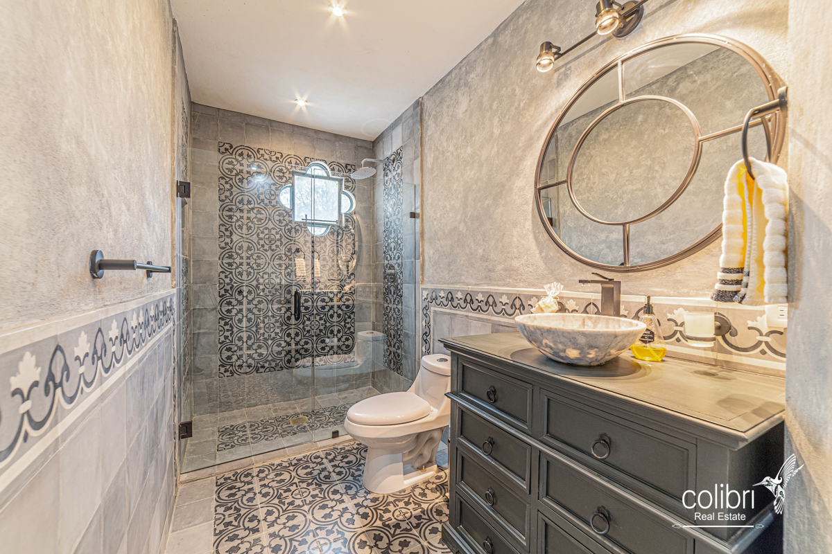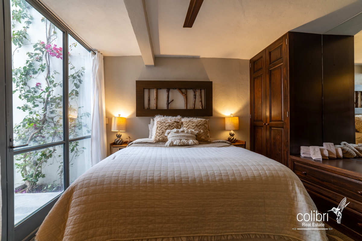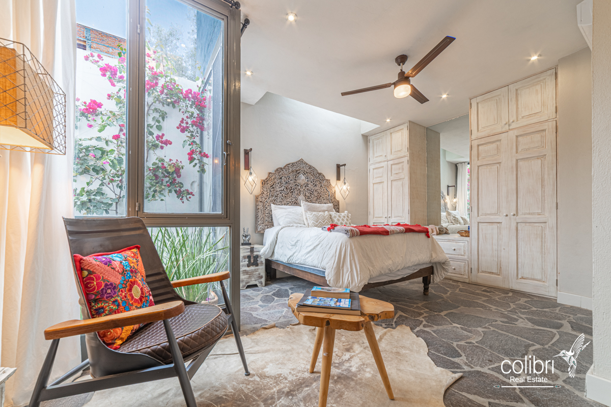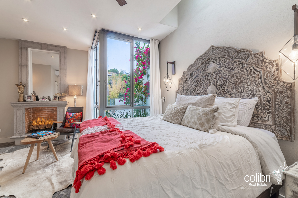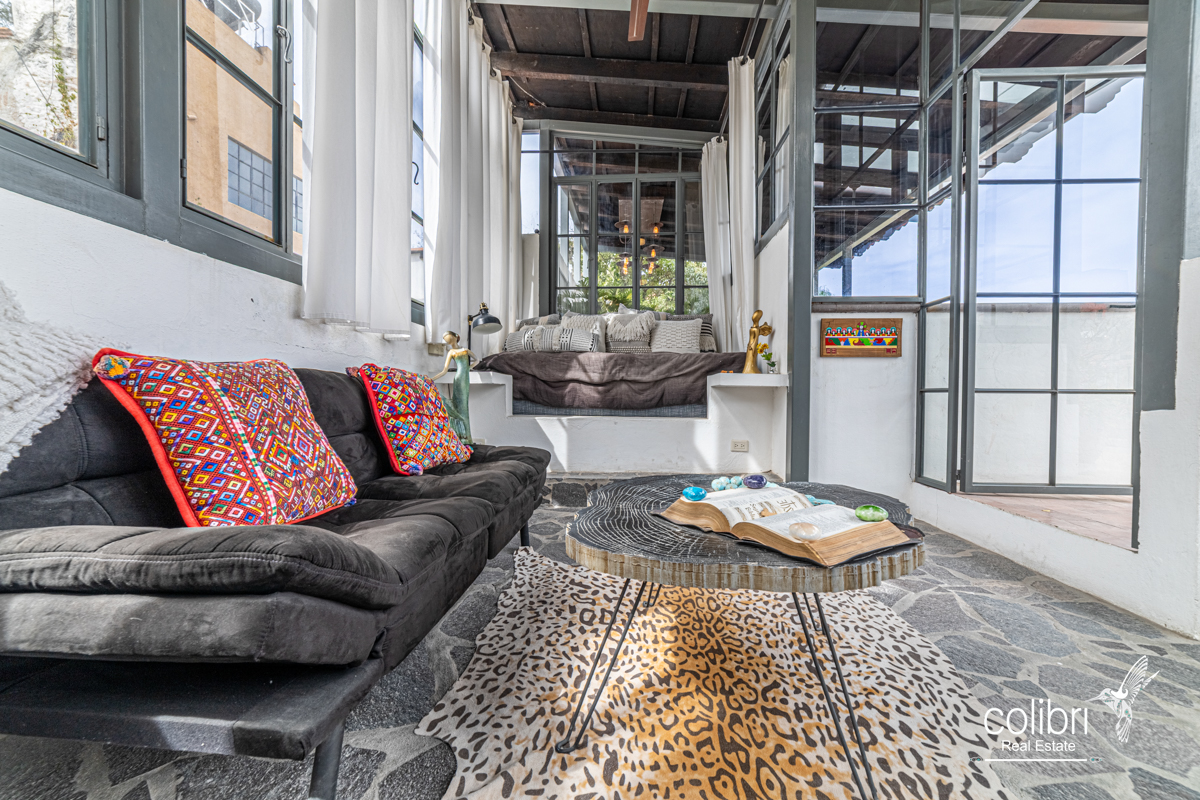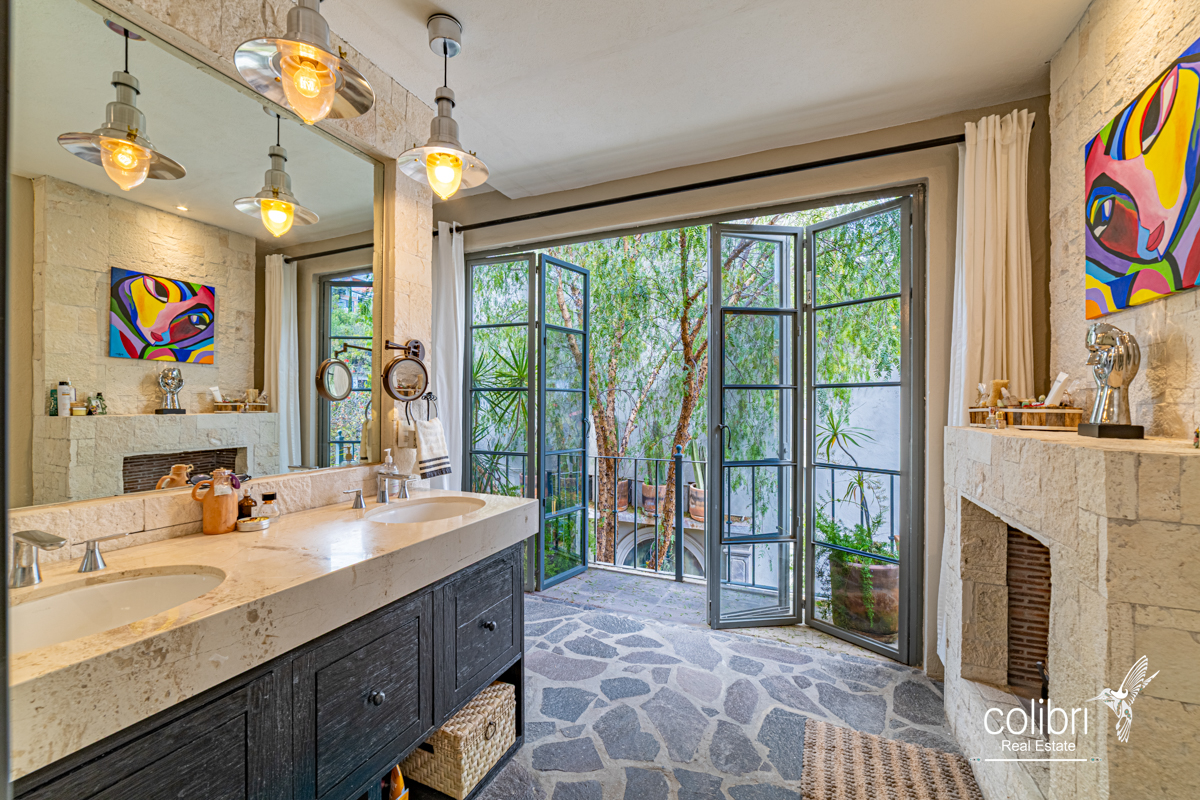 This level offers an exciting multipurpose area, perfect as a study or additional bedroom, surrounded by windows and exquisitely decorated. Its bathroom, adorned with vibrant Talavera tiles, adds a touch of color and tradition.