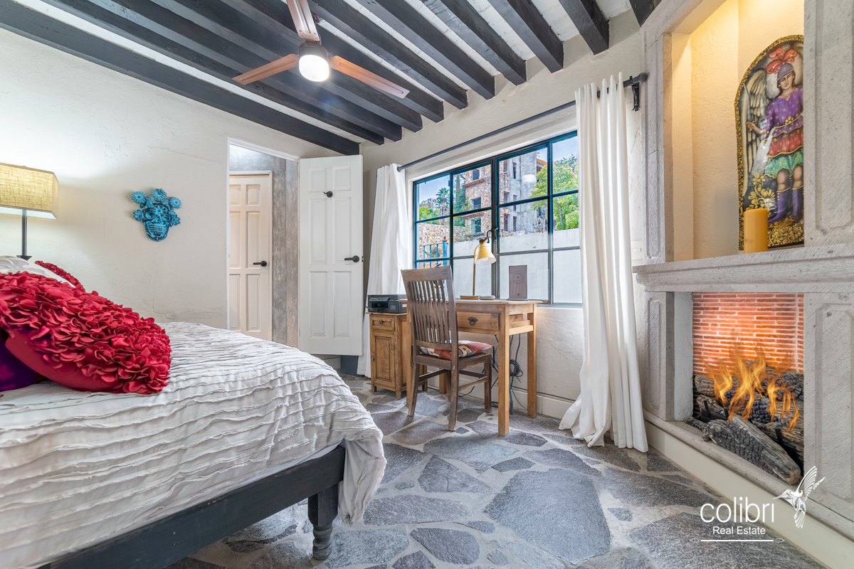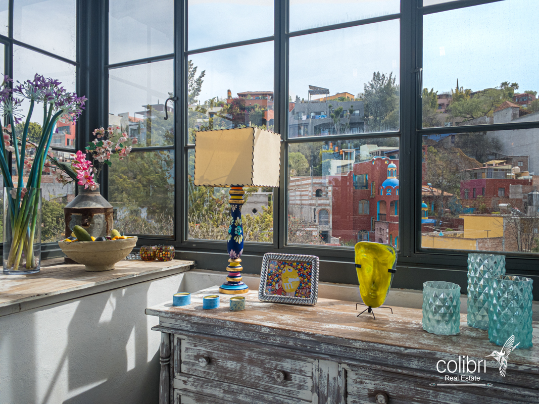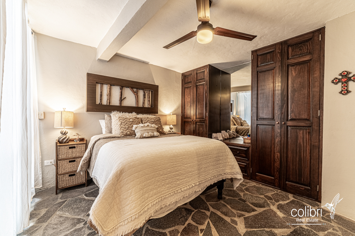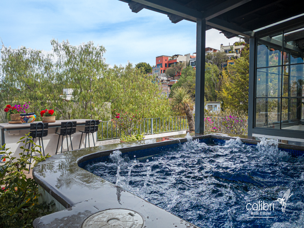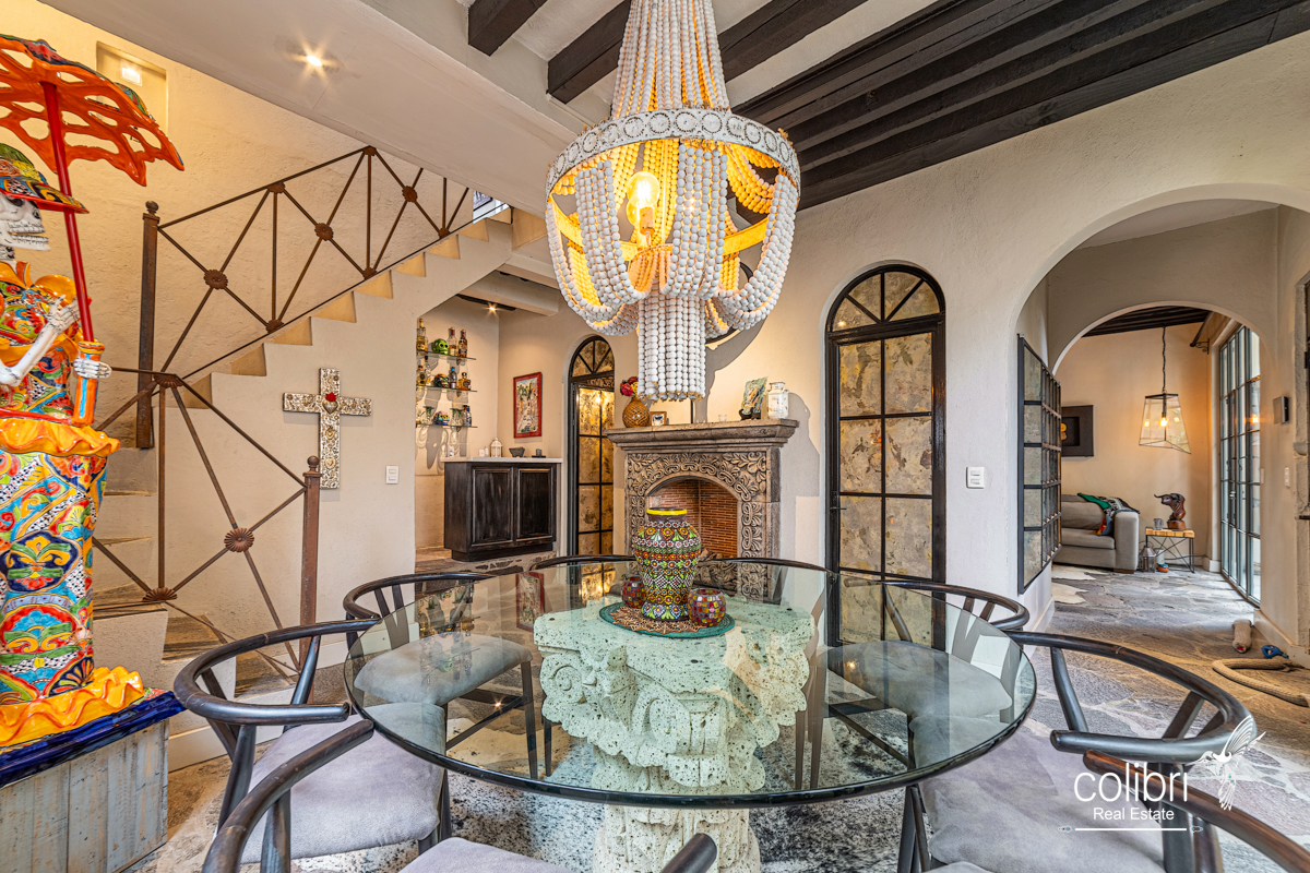 This level offers an exciting multipurpose area, perfect as a study or additional bedroom, surrounded by windows and exquisitely decorated. Its bathroom, adorned with vibrant Talavera tiles, adds a touch of color and tradition.