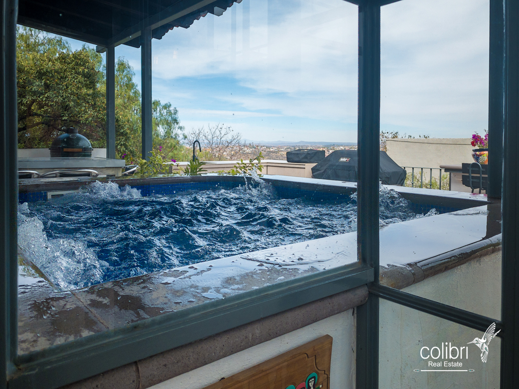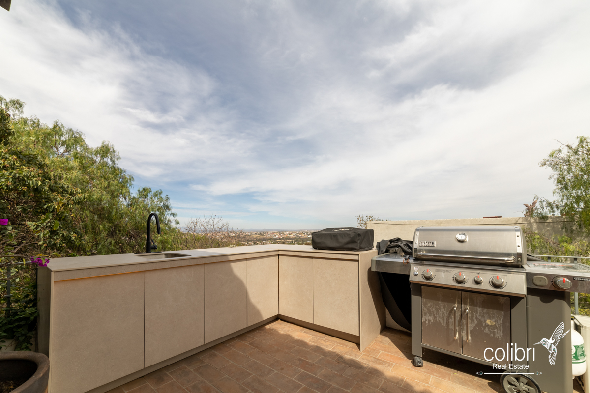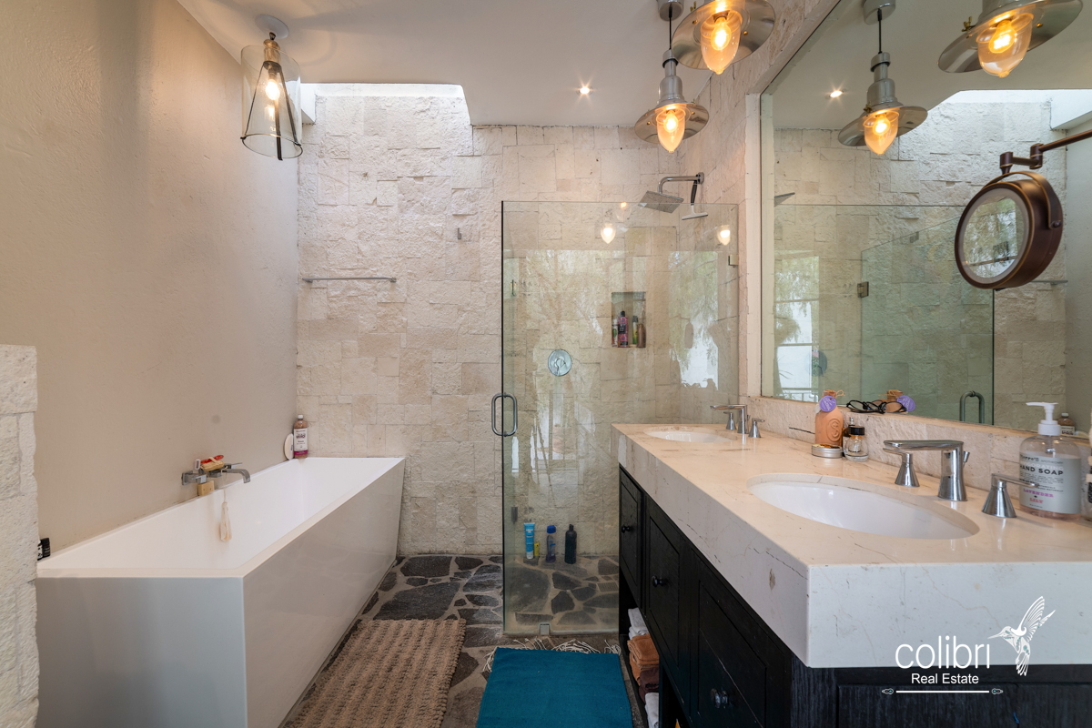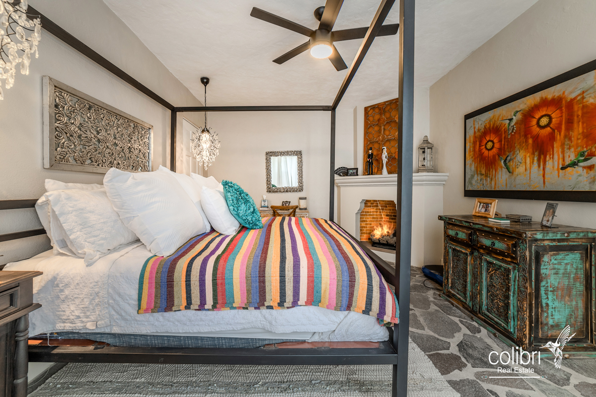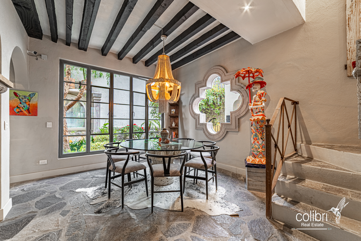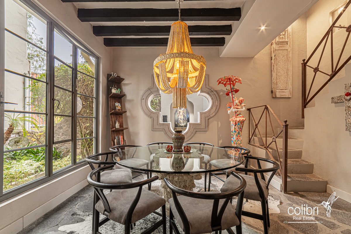 This level offers an exciting multipurpose area, perfect as a study or additional bedroom, surrounded by windows and exquisitely decorated. Its bathroom, adorned with vibrant Talavera tiles, adds a touch of color and tradition.