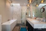 o The master bedroom, simply spectacular. Its wide-opening balconies allow fresh air and natural light to flood both the room and its magnificent en-suite bathroom, which features a separate bathtub and shower, double sinks, a fireplace, and a spacious closet.