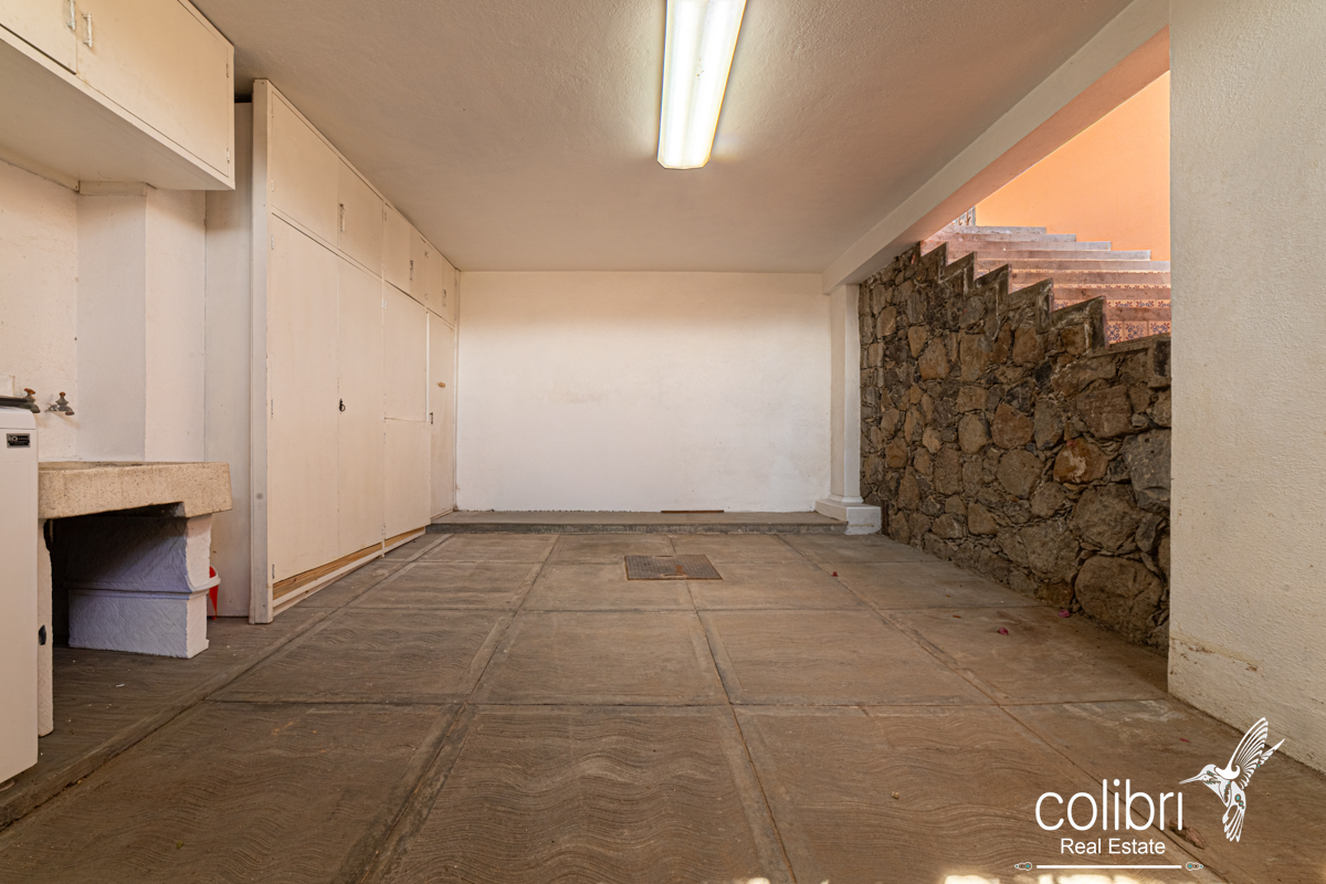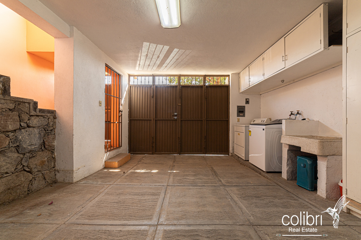 En la cochera se ubica el área de lavandería, con conexiones para lavadora, secadora y el tradicional lavadero de cemento.