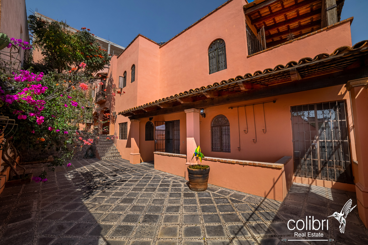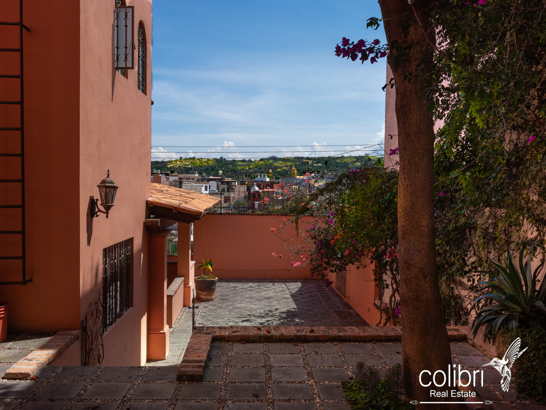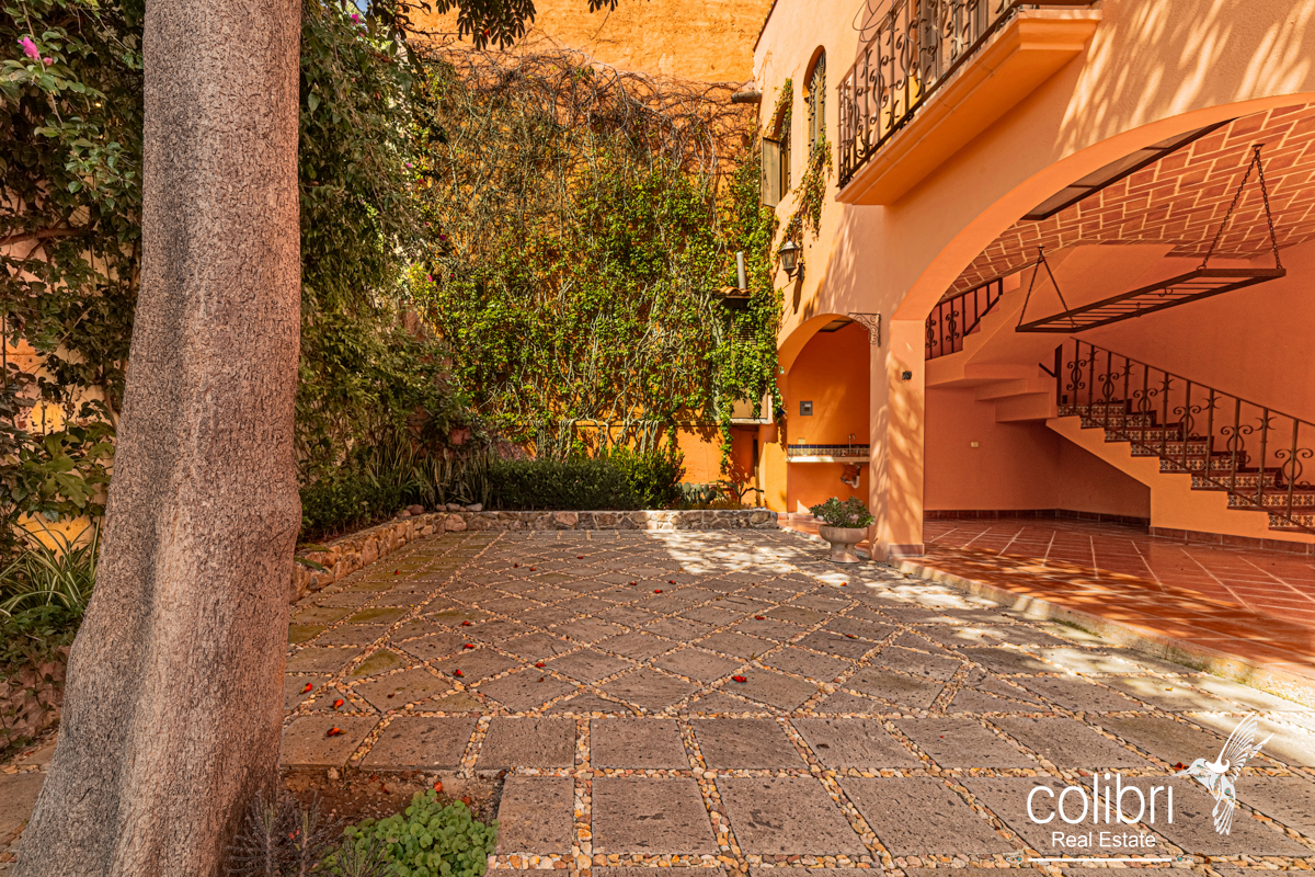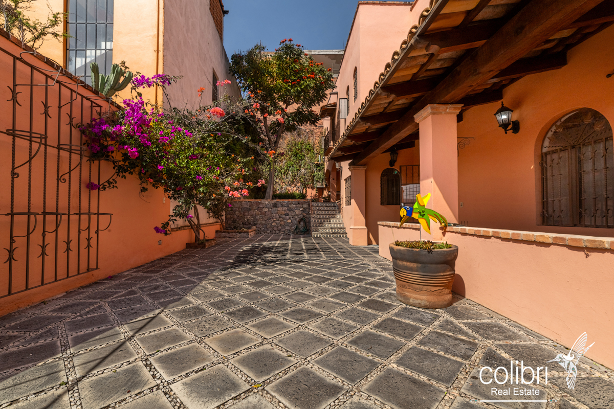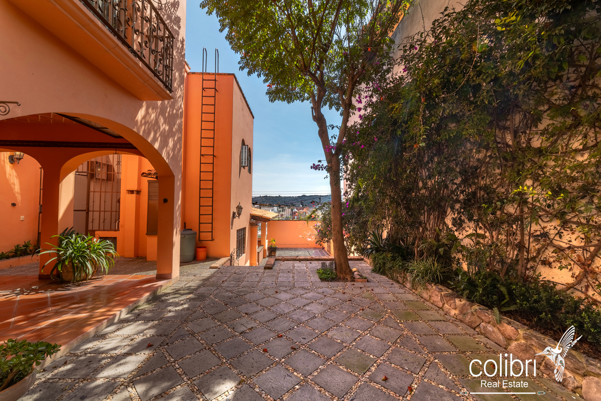 El patio es, sin duda, uno de sus mayores encantos. Con dos terrazas que invitan a imaginar reuniones, plantas y momentos al aire libre, está rodeado de jardineras floreadas, una buganvilia siempre viva y un majestuoso árbol que brinda sombra fresca durante el día. Desde aquí se disfruta una hermosa vista de la Parroquia, mientras que la terraza techada, con su meseta y fregadero, se convierte en el rincón perfecto para convivir o relajarse en cualquier momento.