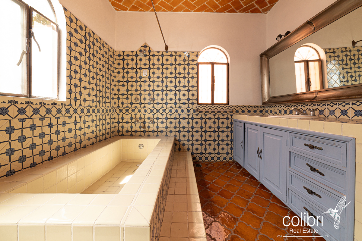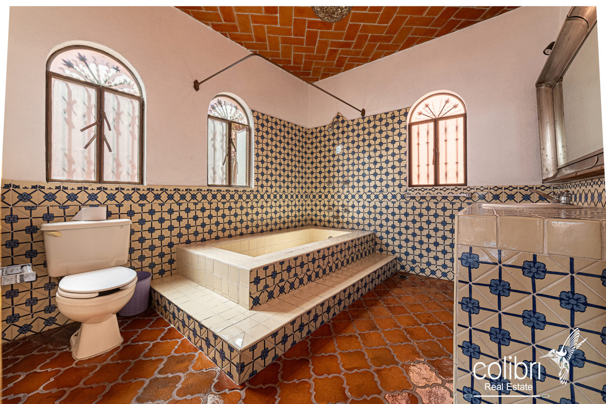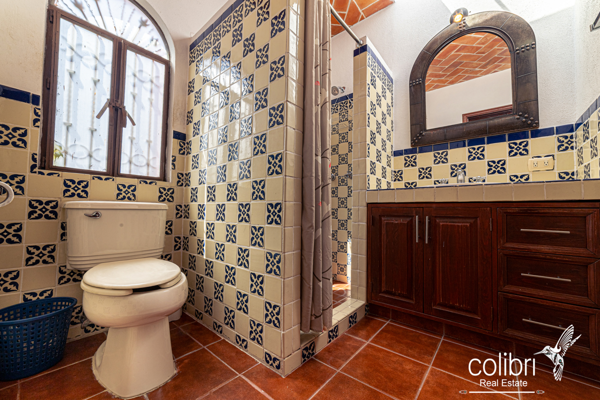 La segunda recámara se encuentra separada del edificio principal, ofreciendo privacidad total. Se accede a través de una escalera ubicada en el patio techado, y cuenta con su propio balcón, ventanas luminosas y un baño con azulejo de talavera, manteniendo la armonía del estilo español que caracteriza toda la casa.